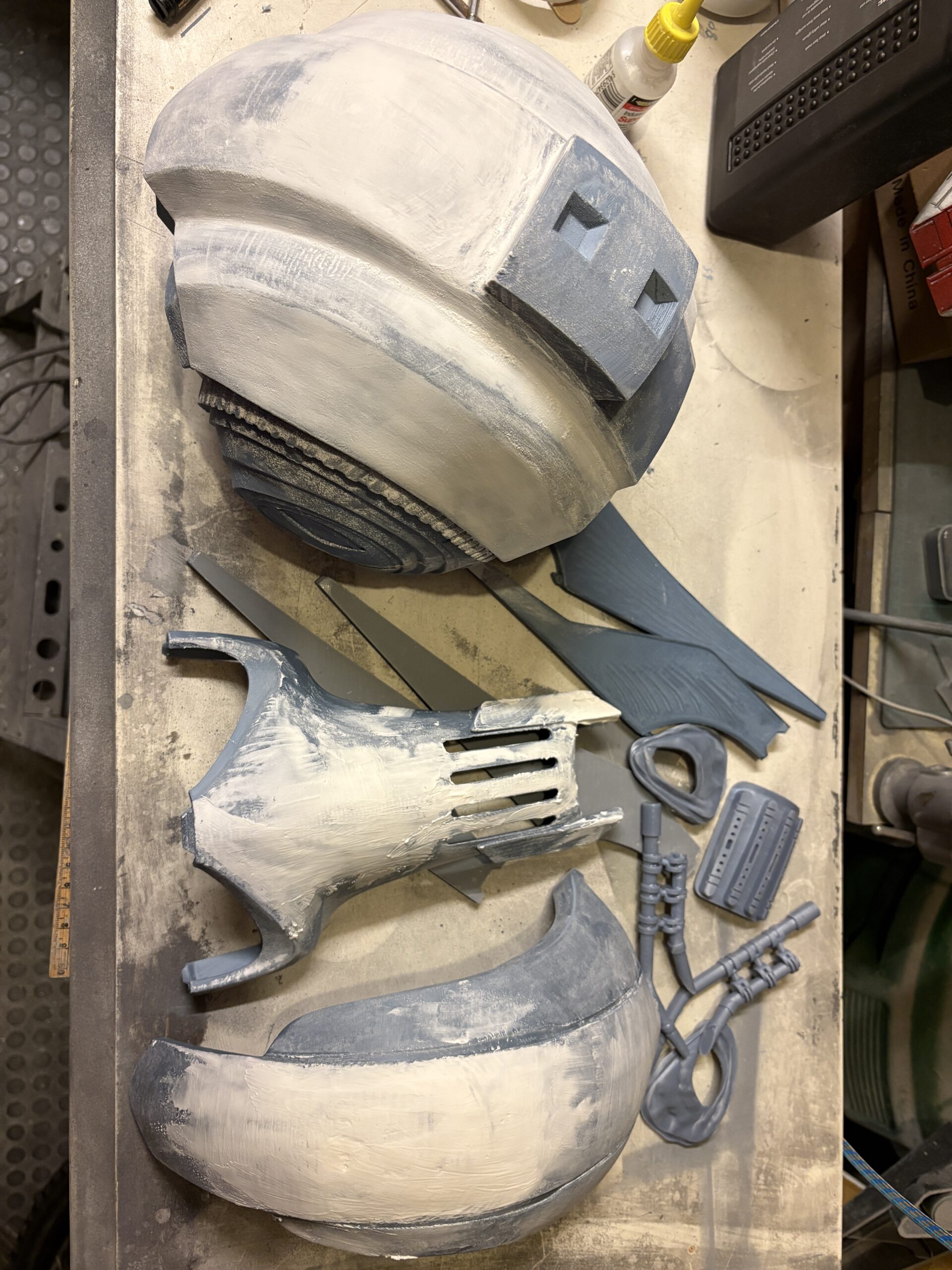 This was a set of 3D prints which pretty much ALL needed to be significantly filled and smoothed due to the compound curves. There really is no way of orienting this kind of print to remove THAT need!